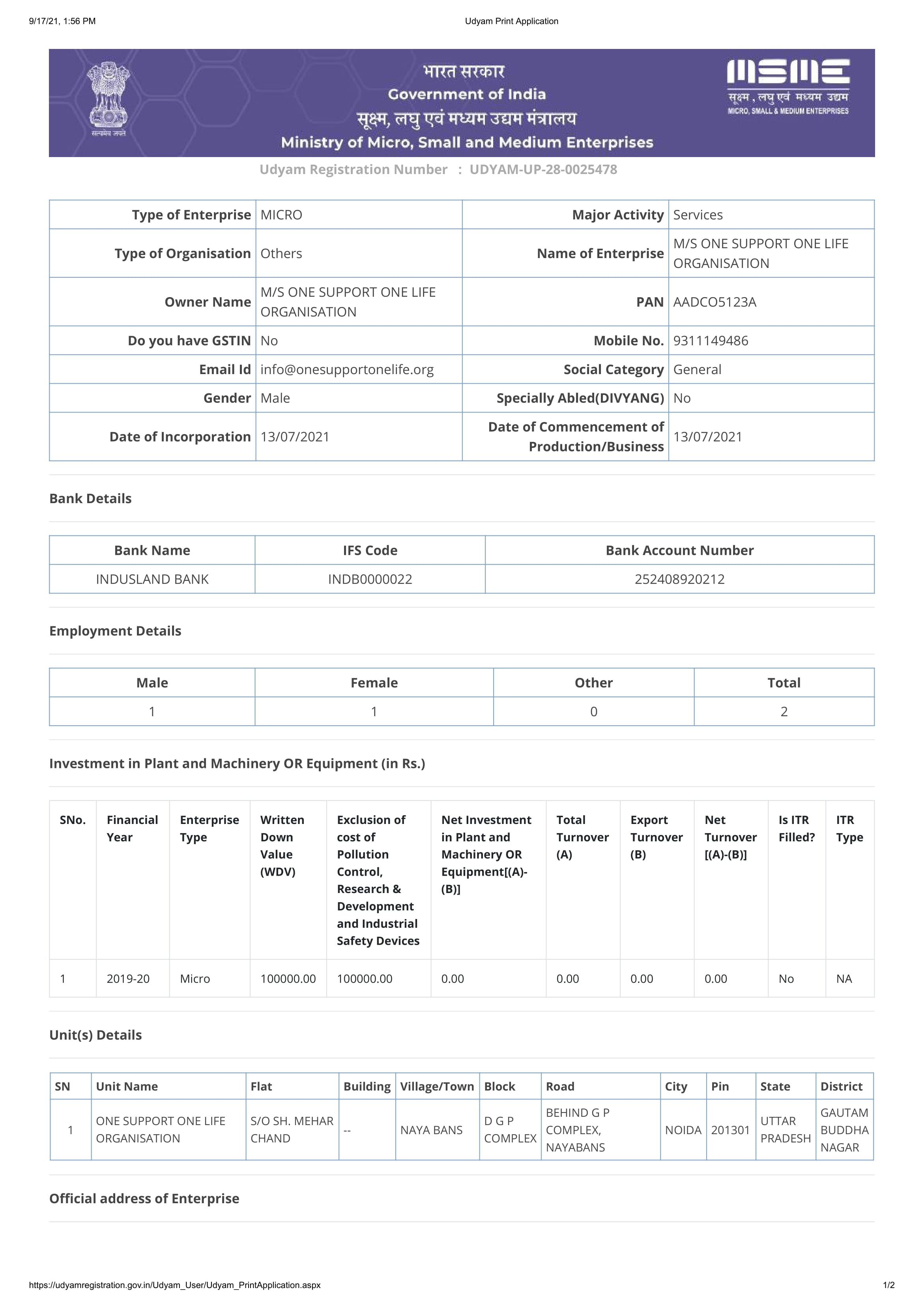 *All Donations To One Support One Life Organisation Are Tax Exempted Under Section 80 G(5)(vi) of Income Tax Act 1961.*